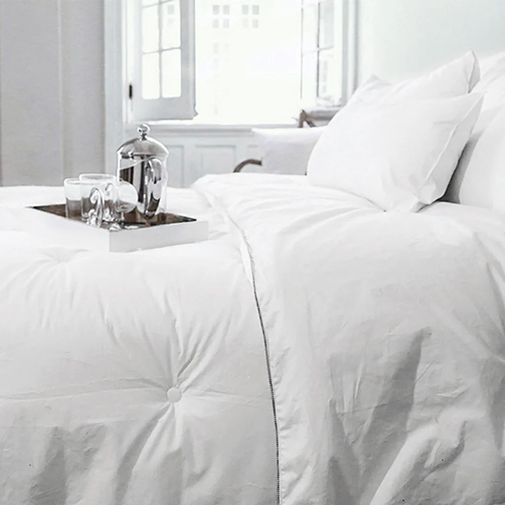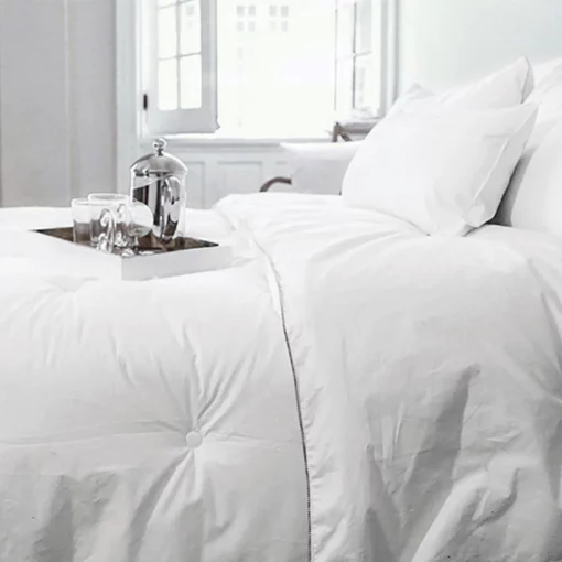 - Cubierta 100% de algodón de 233 hilos, acabado anti-fuga. Garantizan un relleno en perfecto estado por mucho más tiempo.