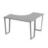 Escritorio con diseño simétrico y angular, fabricado en melamina 16 mm, resistente a impactos y abrasión, con base de acero tubular resistente a ralladuras y corrosión.