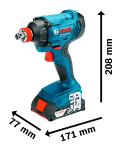 La Llave de impacto inalámbrica Bosch GDX 180-LI de 18V, tiene un exclusivo sistema Bosch con mandril 2 en 1: 1/4″ hexagonal y 1/2″ cuadrado. Tiene un sistema que protege las celdas de la batería que evita el sobrecalentamiento y garantiza mayor vida útil, además, cuenta con protección electrónica del motor, que evita que este se queme y garantiza mayor durabilidad de la herramienta. La Llave de impacto inalámbrica de Bosch GDX 180-LI ofrece más productividad gracias a su alta rotación de 2.800 rpm, al torque de 180 Nm e impactos por minuto de 3.600 ipm. Ideal para techadores, montadores de estructuras metálicas, constructoras, carpinteros, industrias, talleres automotrices, entre otros. Herramienta 100% compatible con baterías y cargadores Bosch de 18V y cuenta con 1 año de garantía Bosch. El producto incluye 2 baterías 18V de 2 Ah, 1 cargador GAL 18V-20, y un maletín plástico.