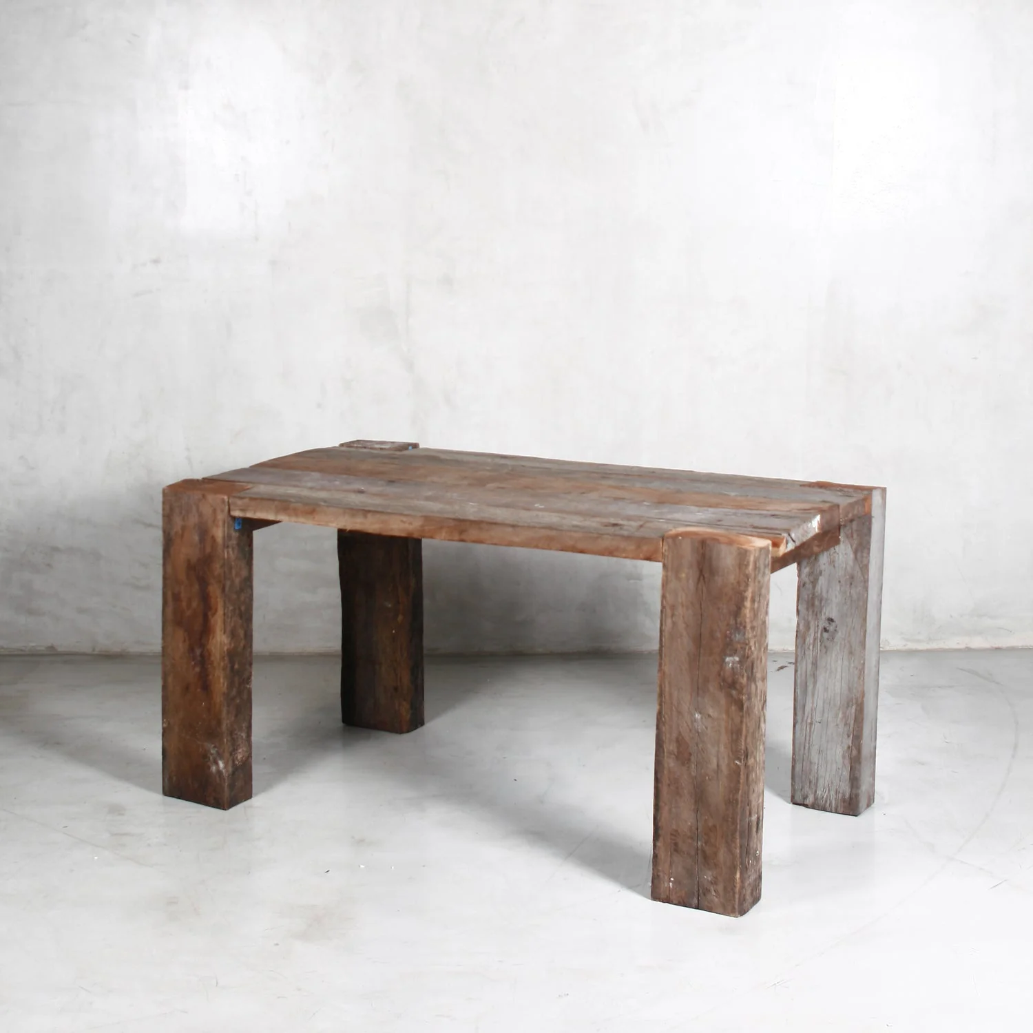 Mesa de comedor fabricada en tablón de madera de recuperación. Ideal para interior y exterior.