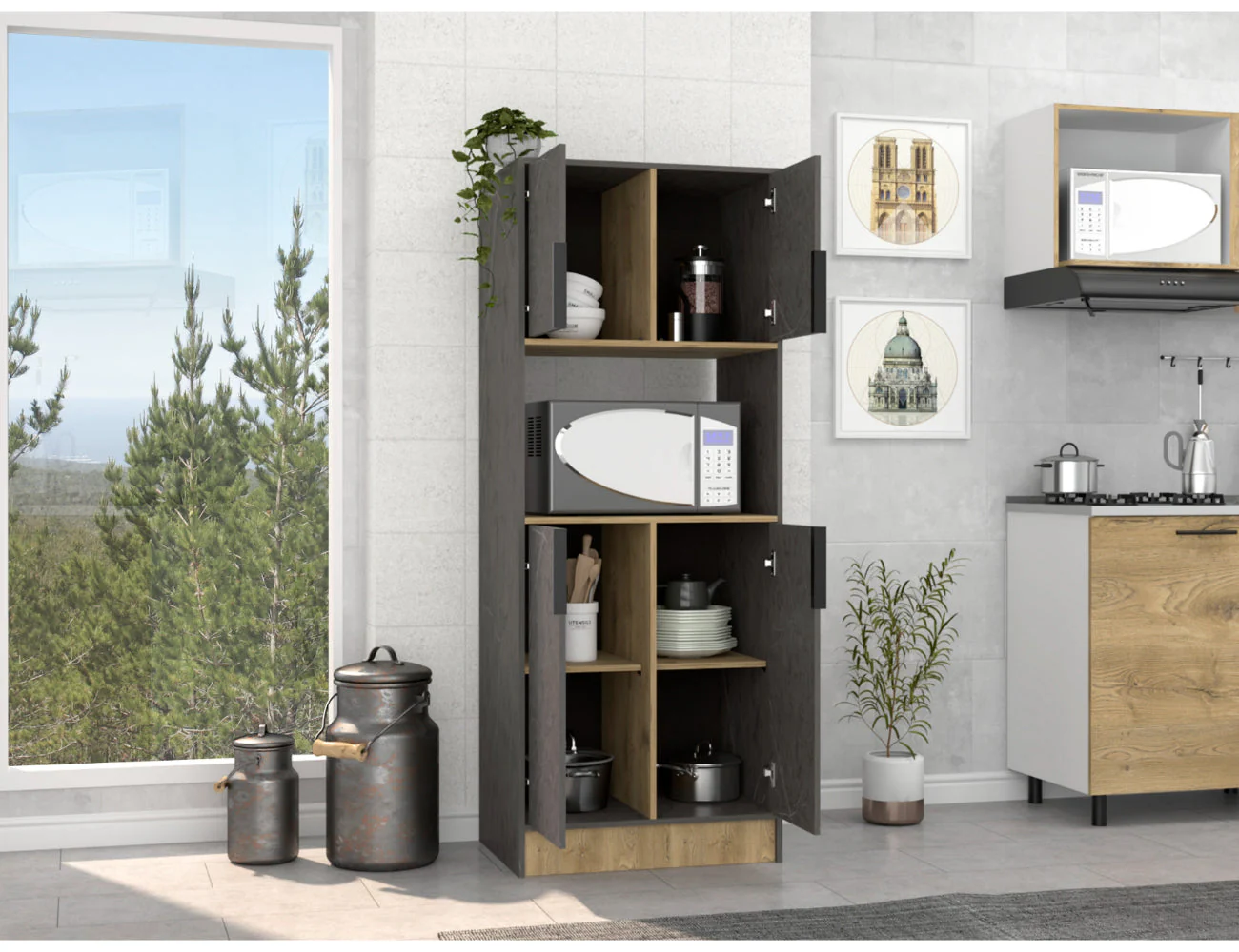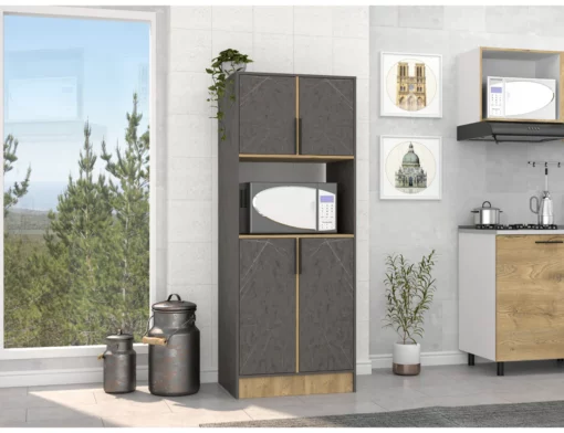 Módulo Microondas Alto, con cuatro puertas batientes, manijas metálicas, diseño moderno con combinación de colores y fácil instalación.