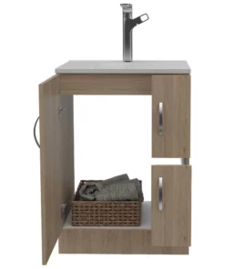 Mueble de baño con una puerta batiente, dos cajoens, amplios espacios de almacenamiento, incluye lavamanos en recina
